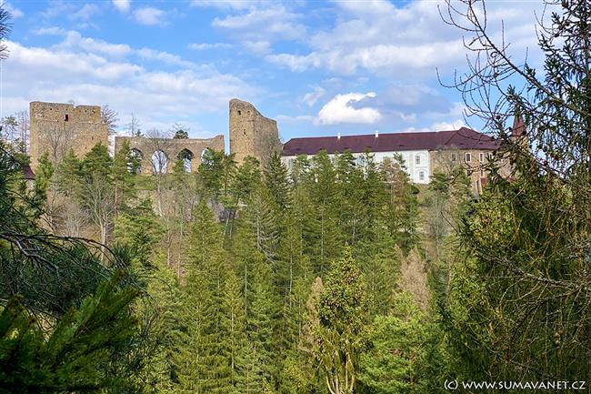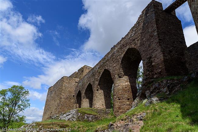 Hrad Velhartice byl založen na přelomu 13. a 14. století na skalním ostrohu, obtékaném říčkou Pstružnou. Tento hrad si patrně jako rodové sídlo pánů z Velhartic počal stavět Bušek starší z Velhartic, hrad dostavoval Bušek mladší, oba byli věrní a oblíbení komorníci Karla IV.