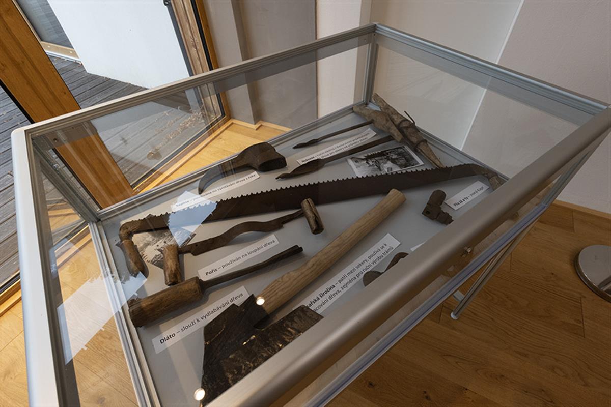 Vznikla v rámci projektu přeshraniční spolupráce Česká republika – Svobodný stát Bavorsko: 133 - Dřevařství na Šumavě a v Bavorském lese, Forst- und Holzwirtschaft im Böhmerwald und im Bayerischen Wald, libreto vytvořili pracovníci Západočeské univerzity v Plzni.Expozice objasňuje, proč a jak byl osud obce Dlouhá Ves za vlastnictví rodu Schwarzenbergů spojen s rozvojem dřevařství, jak „zlatý brouček“ ovlivnil život obyvatel Šumavy. Ukazuje také typické dřevařské činnosti a nářadí při něm používané, stejně jako se dotýká i každodenního života dřevařů – od typických dřeváků zvaných nejšle až po důchodový přídělový systém, který rod Schwarzenbergů pro své dřevaře vytvořil již v 19. století.