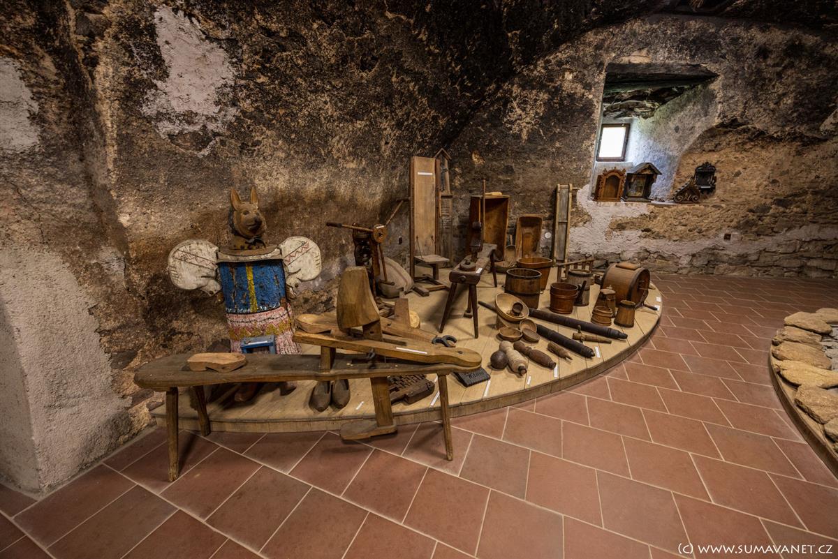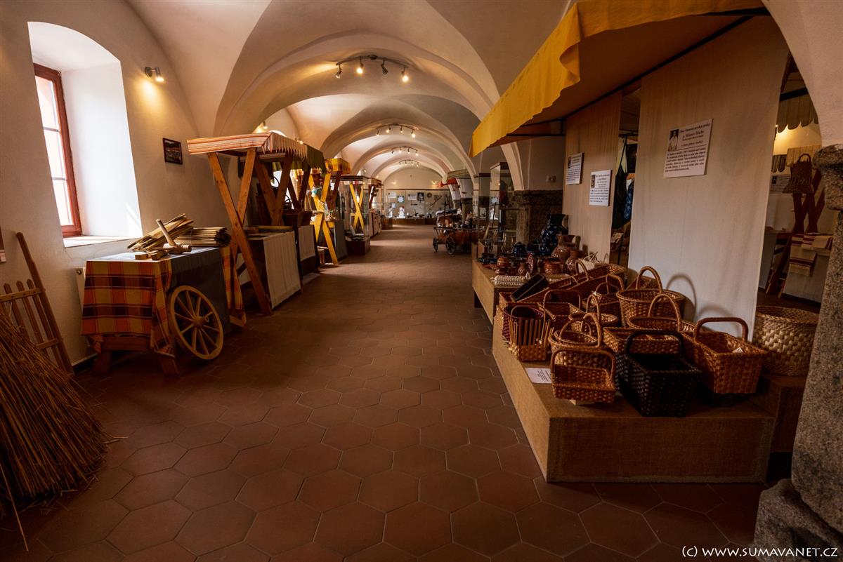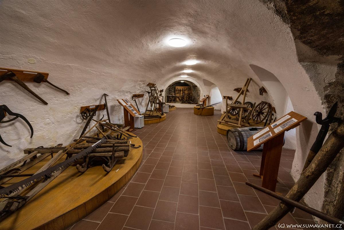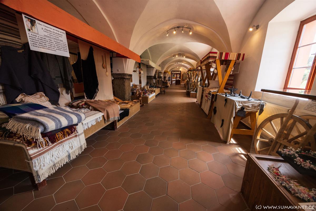 Ve zrestaurovaných sklepeních zámku je umístěna stálá expozice pošumavských lidových řemesel a historii zámku. V nedalekém infocentru lze domluvit prohlídku.