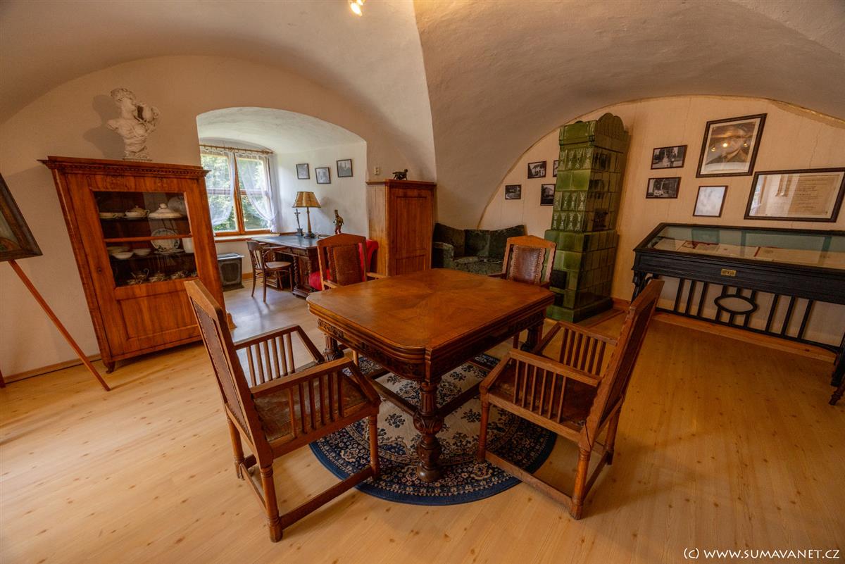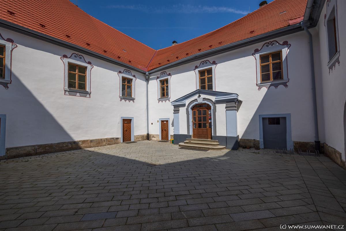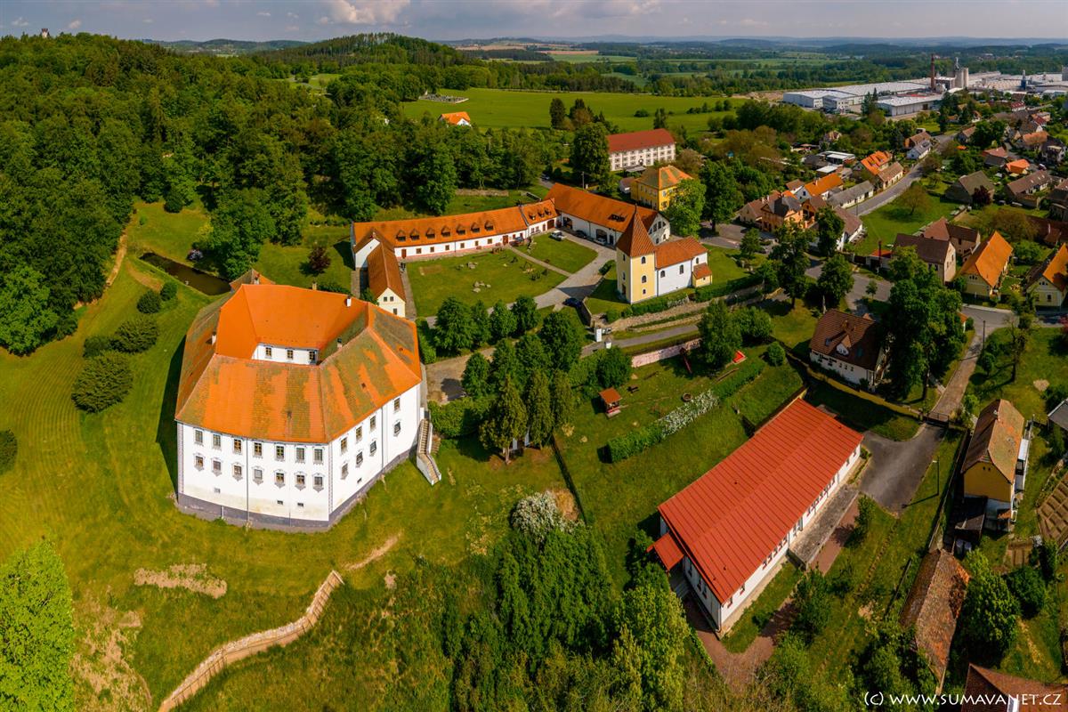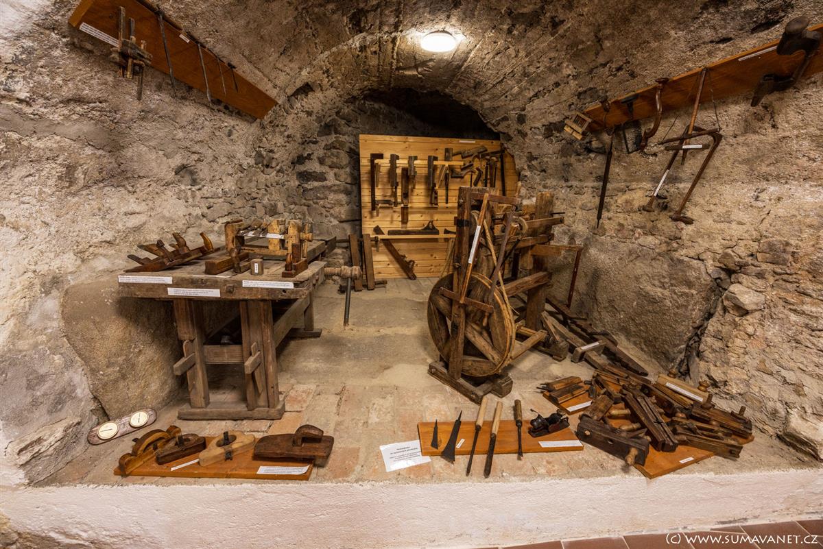 Ve zrestaurovaných sklepeních zámku je umístěna stálá expozice pošumavských lidových řemesel a historii zámku. V nedalekém infocentru lze domluvit prohlídku.