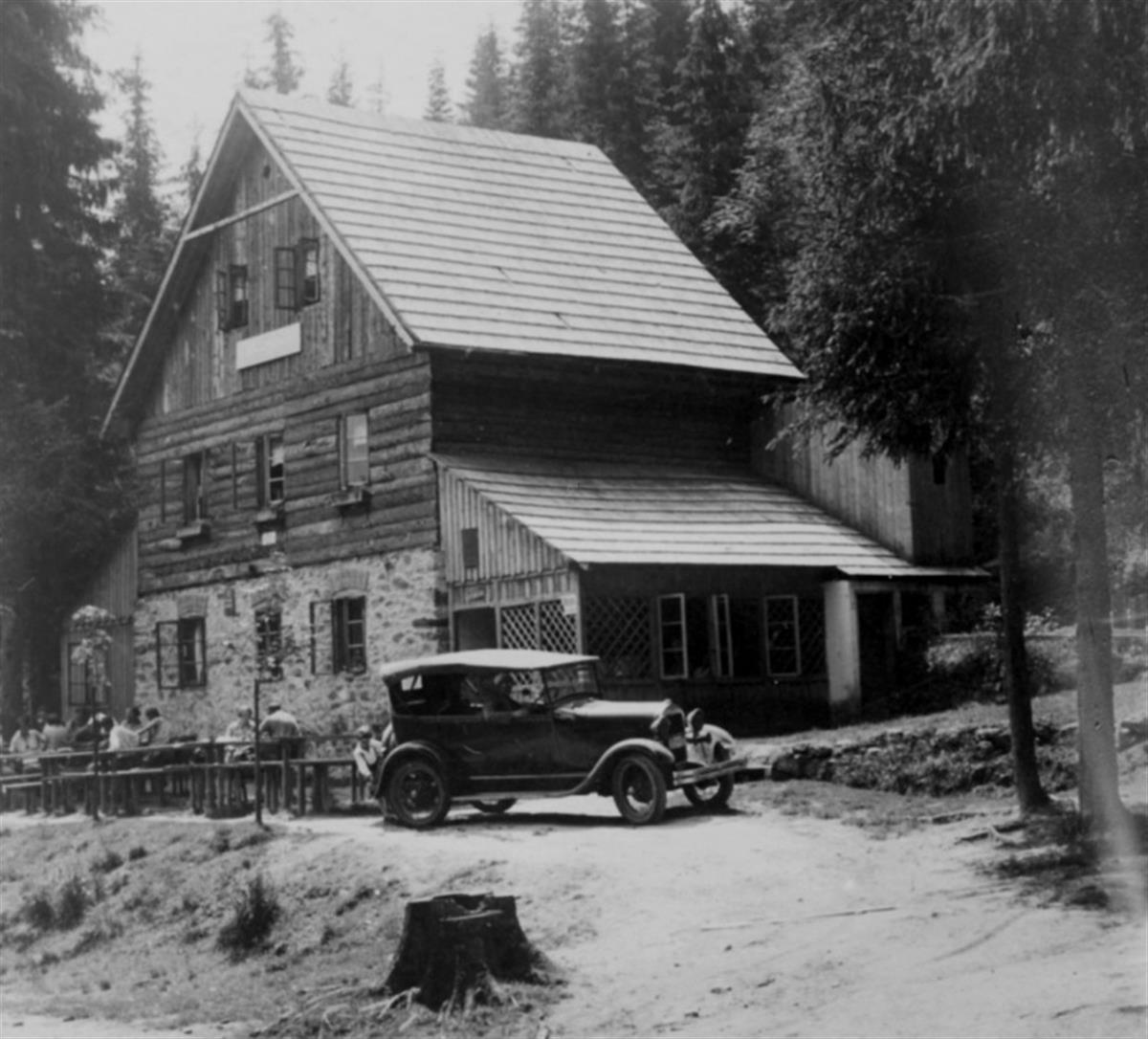 Výhodou bylo, že k chatě u Pramenů Vltavy bylo možné dojet motorovými vozidly. Dlouhou dobu měl chatu v nájmu František Pešl ze Zadova. List Pošumaví ze dne 20. září 1930 píše, že „na podzim roku 1922 byla již otevřena chata tato, první v zapadlých těchto končinách. Obsahuje v přízemku hostinskou místnost a byt hospodářův a ve dvou patrech po jedné veliké společné noclehárně. Kol dokola stěn narovnány slamníky s přikrývkami (v 2. patře) a ve druhé noclehárně jsou dvoupatrové hambalky a několik lůžek železných. Celkem 45 noclehů zde lze poskytnouti.“ V roce 1932 si chata vyžádala generální opravu střechy, podlahy a schodiště. Nabídku chaty vystihuje i turistický průvodce z roku 1938: „8 pokojů se 17 lůžky, 2 společné noclehárny se 14 lůžky, je otevřena po celý rok, motorová vozidla až k chatě.“