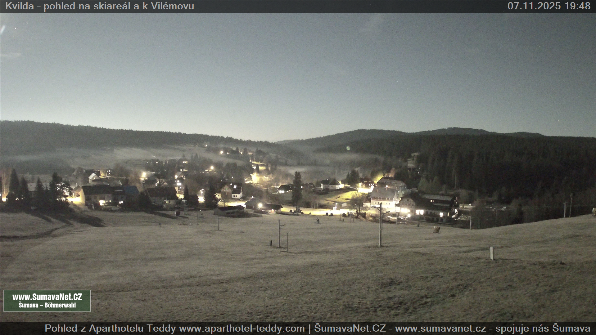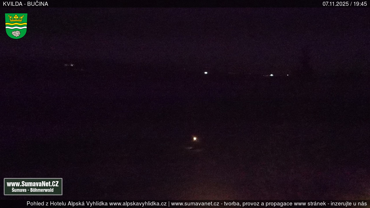 Page contentWebCamsKvildaBig Image07.11.2025 14:25:44Select time: Archive: Today 1 day 2 days Week Month 100 days Year Provozováno Informačním serverem ŠumavaNet.CZ ŠumavaNet.CZ & Aparthotelem TeddyKvilda - Jezerní potokBig Image24.10.2025 7:05:50Select time: Archive: Today 1 day 2 days Week Month 100 days Year Kvilda - centrum07.11.2025 14:24:28BučinaBig Image07.11.2025 14:18:07Select time: Archive: Today 1 day 2 days Week Month 100 days Year Další webkamery Tyto dvě kamery Vám přinášíme ve spolupráci se sumava.eu Refresh page
