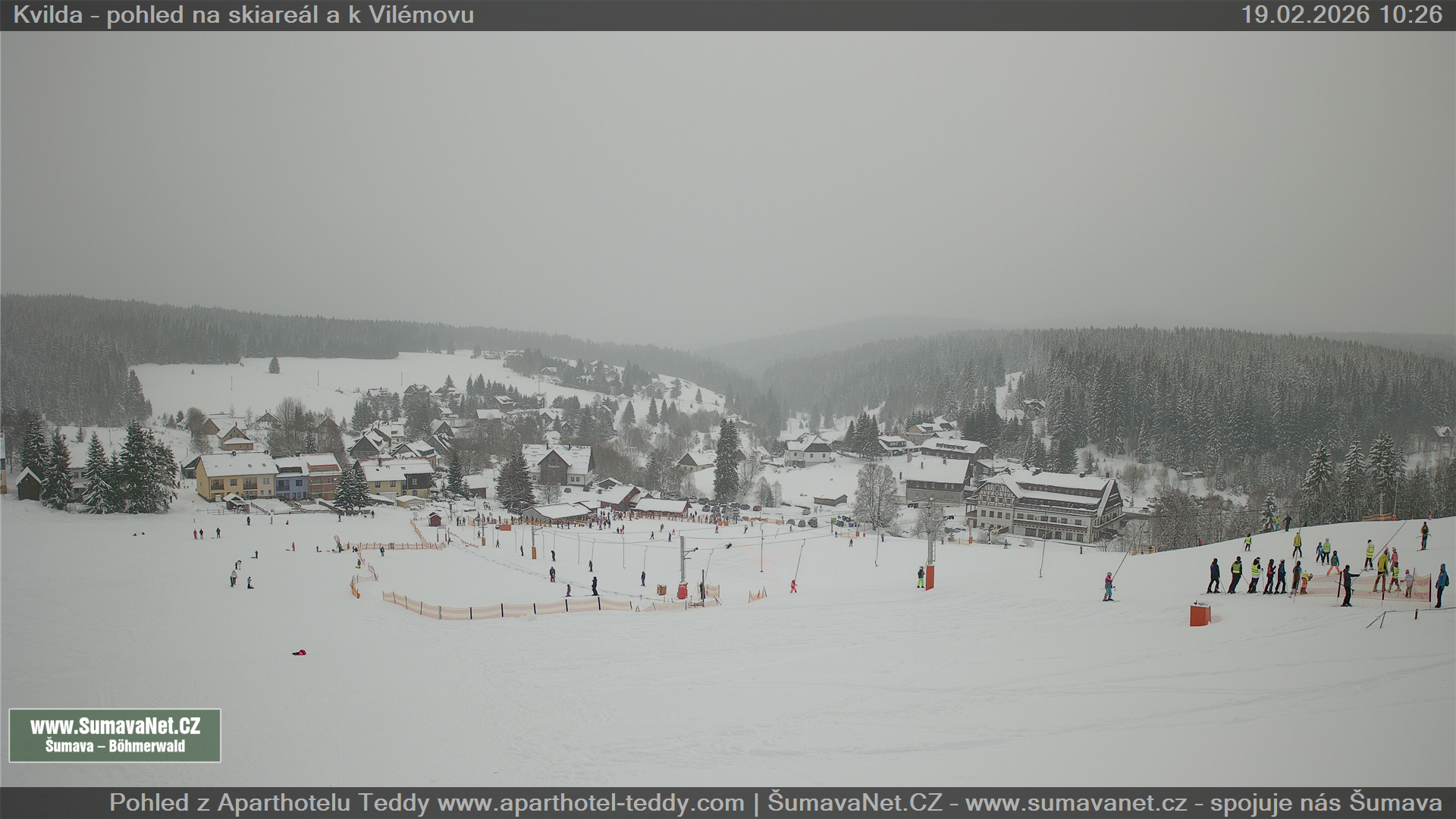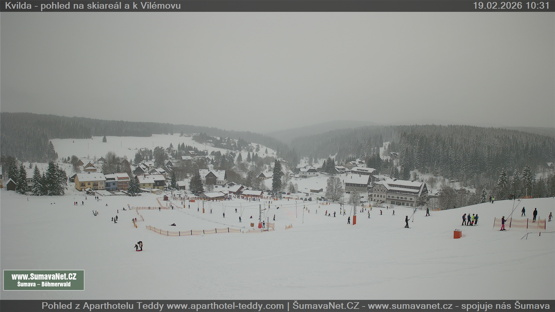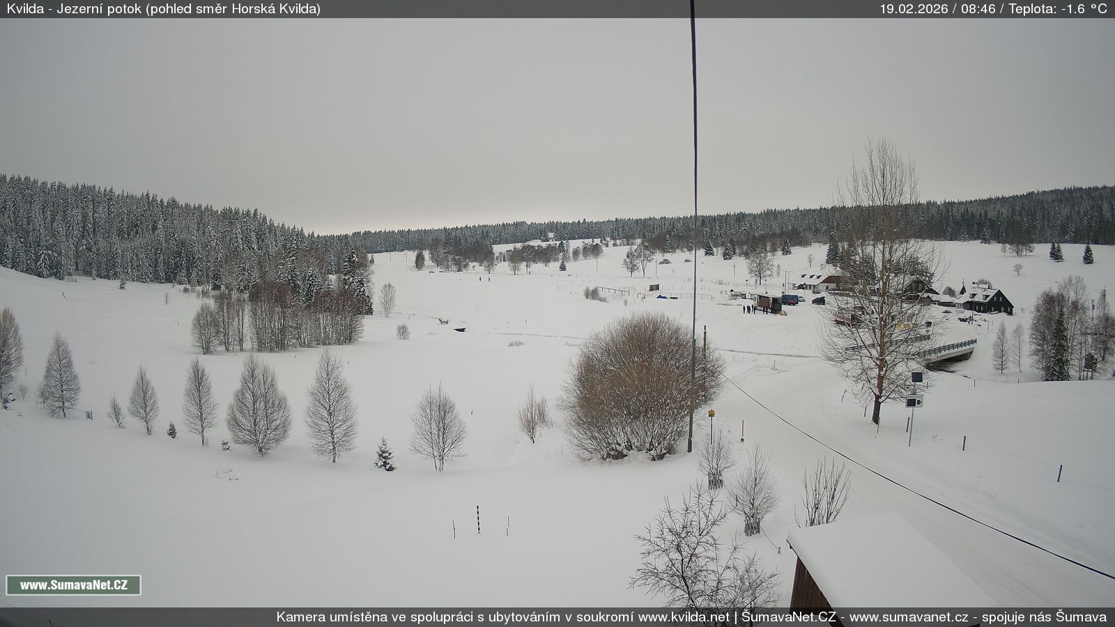 Page contentWebCamsKvildaBig Image19.02.2026 7:43:52Select time: Archive: Today 1 day 2 days Week Month 100 days Year Provozováno Informačním serverem ŠumavaNet.CZ ŠumavaNet.CZ & Aparthotelem TeddyKvilda - Jezerní potokBig Image19.02.2026 7:38:08Select time: Archive: Today 1 day 2 days Week Month 100 days Year Kvilda - centrum19.02.2026 7:44:03BučinaBig Image19.02.2026 7:44:07Select time: Archive: Today 1 day 2 days Week Month 100 days Year Další webkamery Tyto dvě kamery Vám přinášíme ve spolupráci se sumava.eu Refresh page