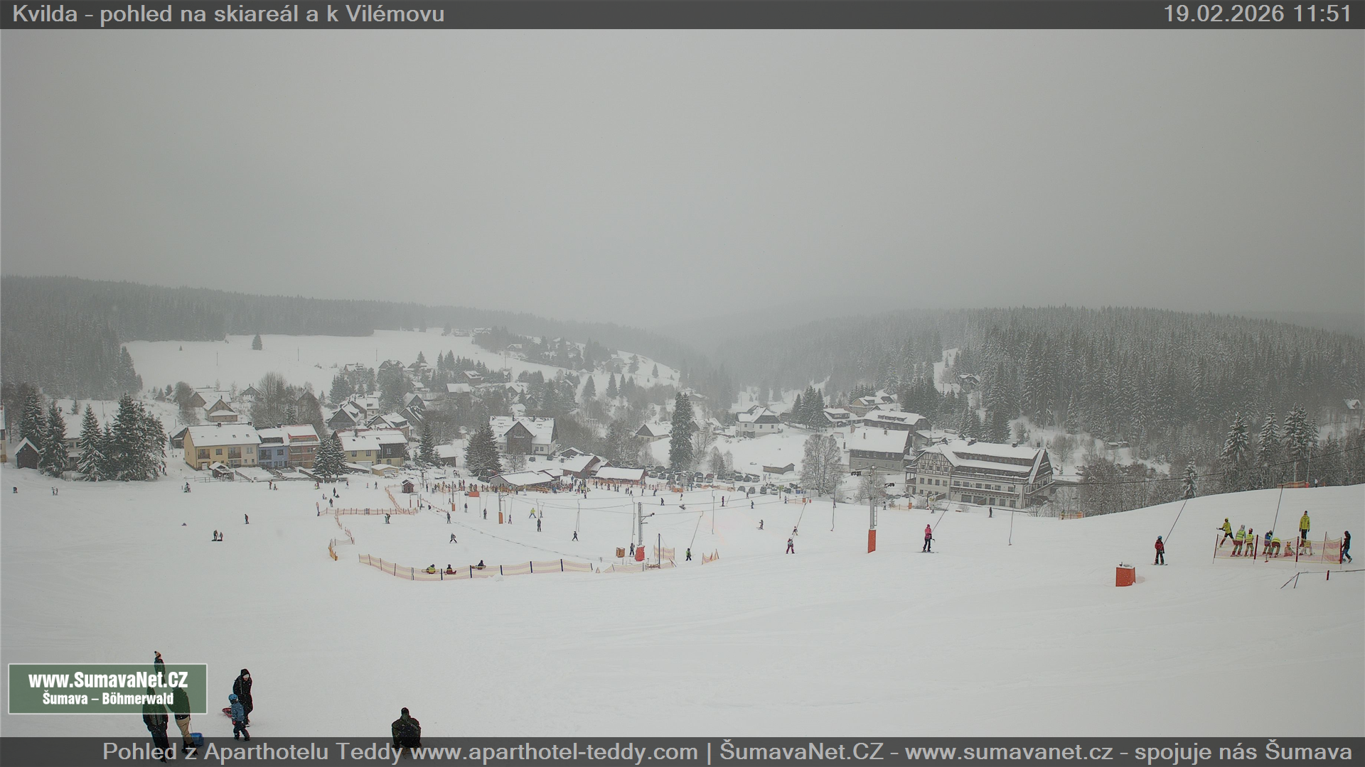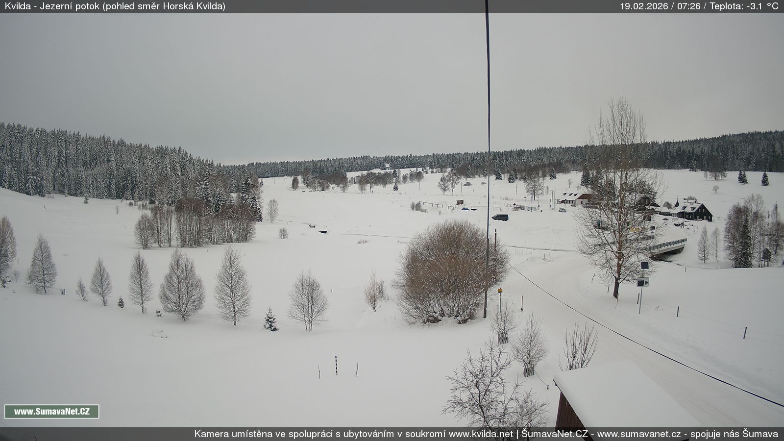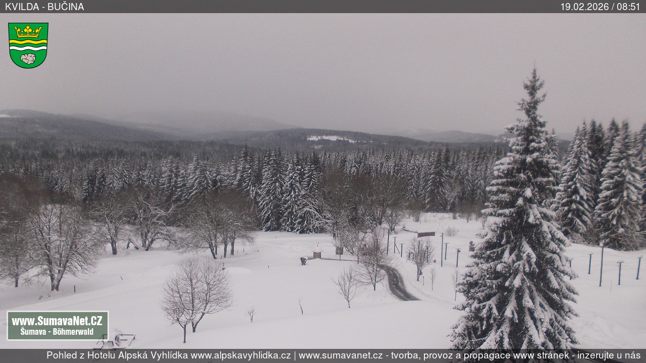 Page contentWebCamsKvildaBig Image19.02.2026 7:43:52Select time: Archive: Today 1 day 2 days Week Month 100 days Year Provozováno Informačním serverem ŠumavaNet.CZ ŠumavaNet.CZ & Aparthotelem TeddyKvilda - Jezerní potokBig Image19.02.2026 7:38:08Select time: Archive: Today 1 day 2 days Week Month 100 days Year Kvilda - centrum19.02.2026 7:44:03BučinaBig Image19.02.2026 7:44:07Select time: Archive: Today 1 day 2 days Week Month 100 days Year Další webkamery Tyto dvě kamery Vám přinášíme ve spolupráci se sumava.eu Refresh page