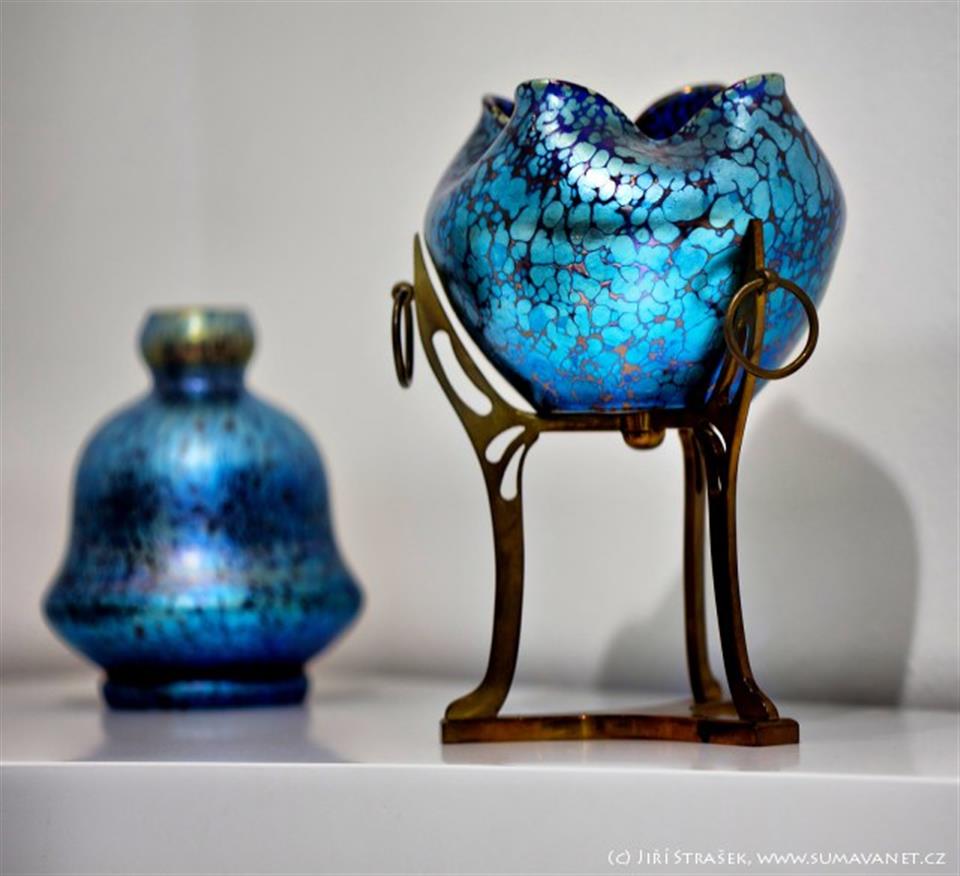 Secesní irisované skla (skla v duhových barvách) ze sklárny v Klášterském Mlýně se staly světově proslulé, firma spolupracovala s předními vídeňskými architekty.