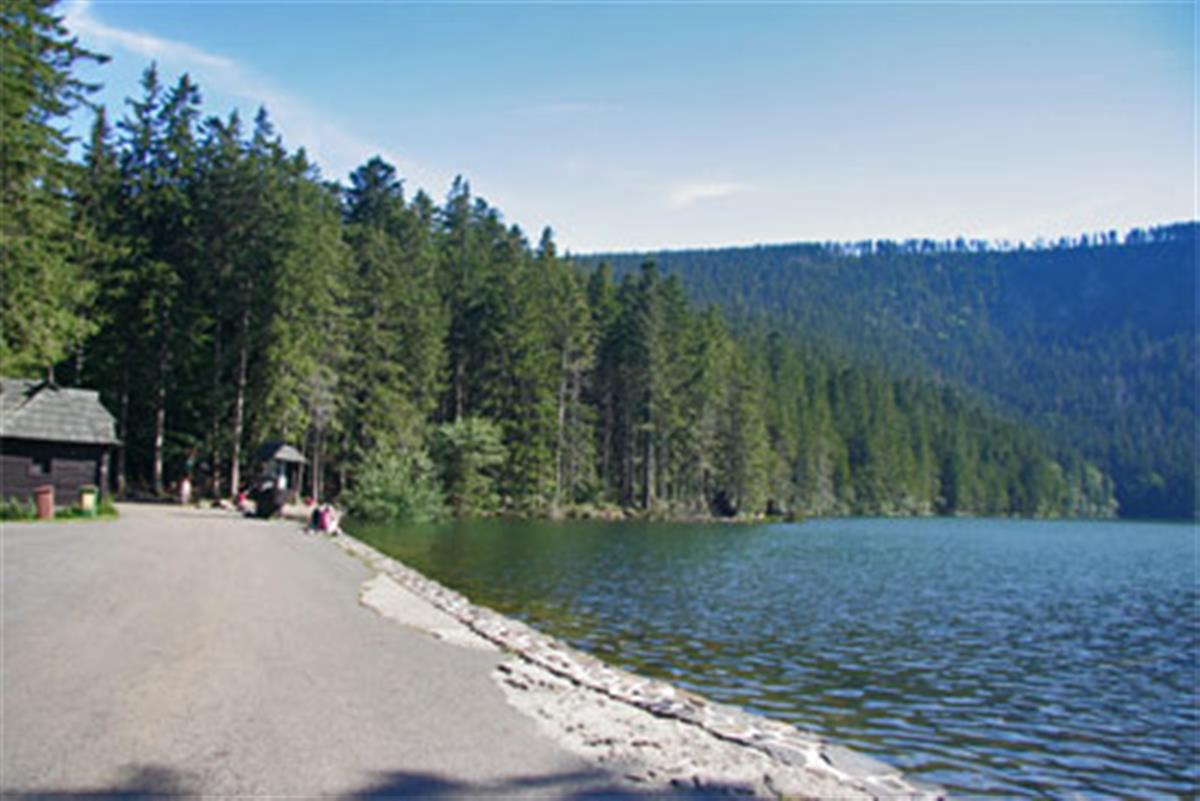 (zvané též Bystřické, Dešenické, České) je rozlohou největší na Šumavě (18,93 ha, hloubka 40 m, délka od hráze k Jezerní stěně 800 m). Leží ve výšce 1008 m n. m. Své jméno dostalo od zdánlivě černé barvy vody jezera, vznikající odrazem okolních hustých lesů. Nad jezerem se zvedá 330 m vysoká karová stěna Jezerní hory.