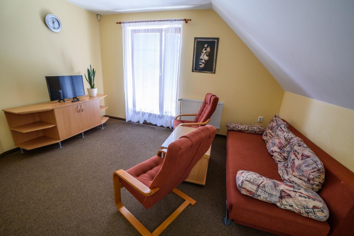 Po rozložení sed. soupravy a válendy v ložnici je celková kapacita apartmánu až 6 osob. V přízemí je úschovna kol a lyží. U domu je zahrada se zahradním posezením. Možnost parkování přímo u objektu. Restaurace a obchod jsou vzdáleny 5 až 10 minut chůze.