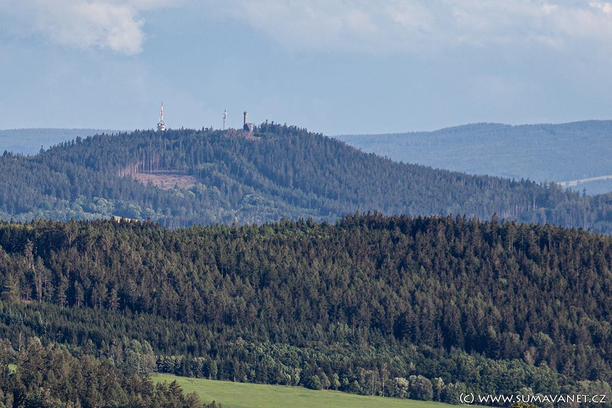 Rozhledna je vysoká 32 metrů a poskytuje nádherné rozhledy na Šumavu.