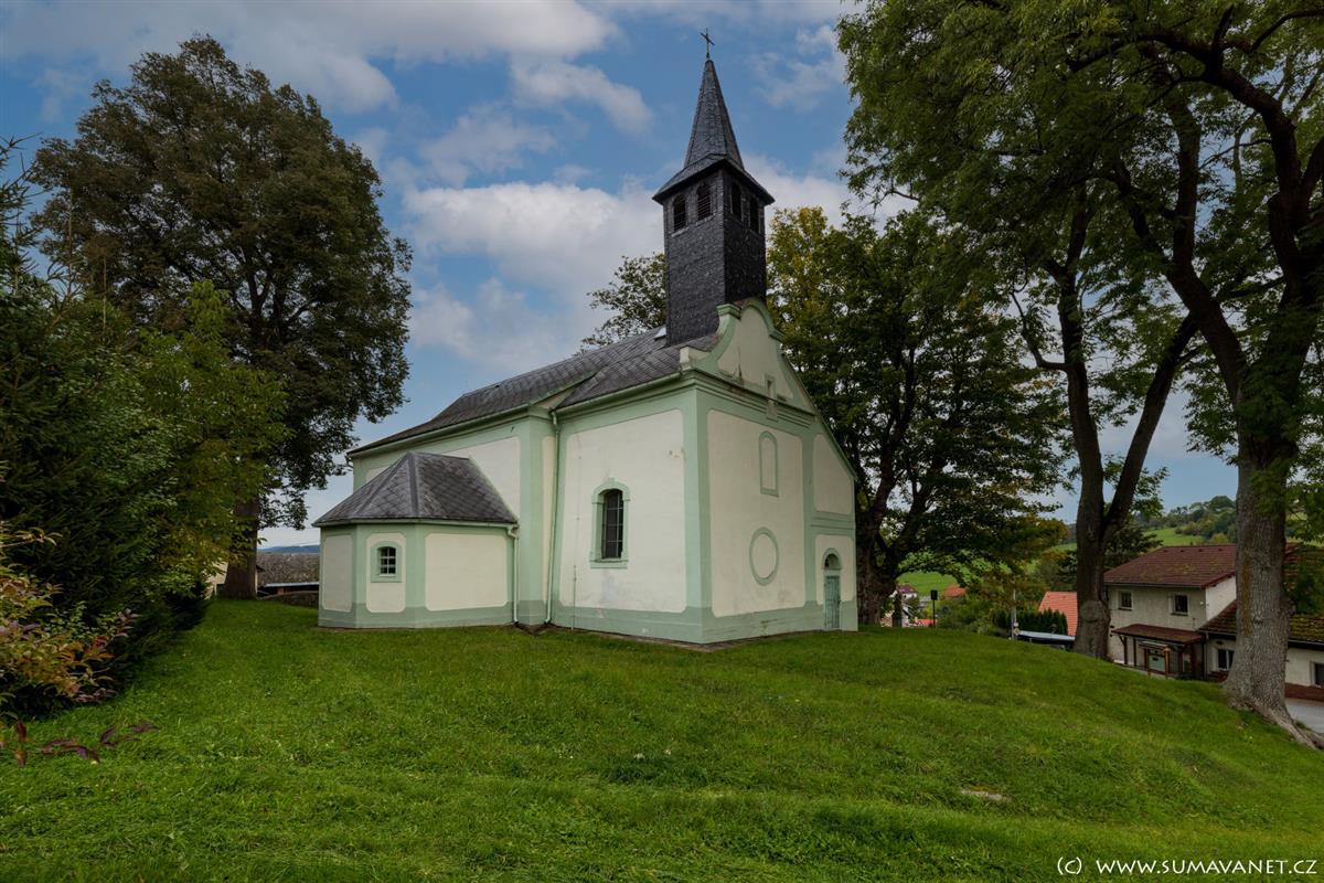 Kostel byl dříve obklopen hřbitovem. Nyní jej obklopuje několik chráněných stromů. V blízkosti kostela stojí pomník padlým v 1. světové válce.