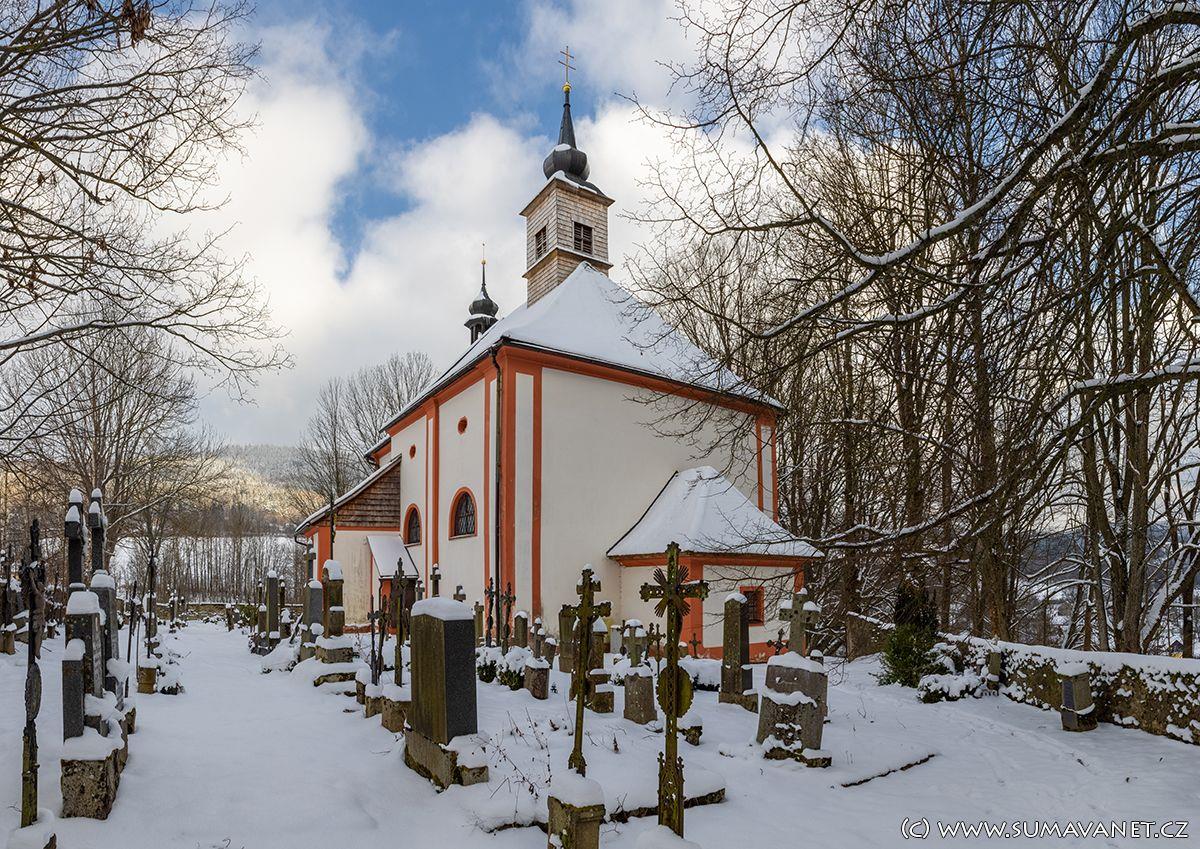 Pod kostelem rostou dvě památkově chráněné lípy, vysazené 24.dubna 1854 učitelem Leidlem a školáky u příležitosti sňatku císaře Františka Josefa I. a jeho manželky Alžběty.