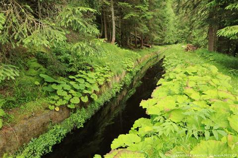 Pěšinou podél betonového koryta náhonu lze projít ve stínu lesa hezkým přírodním prostředím podél celého kanálu. Přibližně ve třetině cesty je vybudován akvadukt, kterým koryto náhonu překlenuje roklinu (6). Po něm lze přejít a pokračovat až na začátek náhonu kde je vybudován jez, který zadržuje vodu Teplé Vltavy a usměrňuje vtok do náhonu (7).
