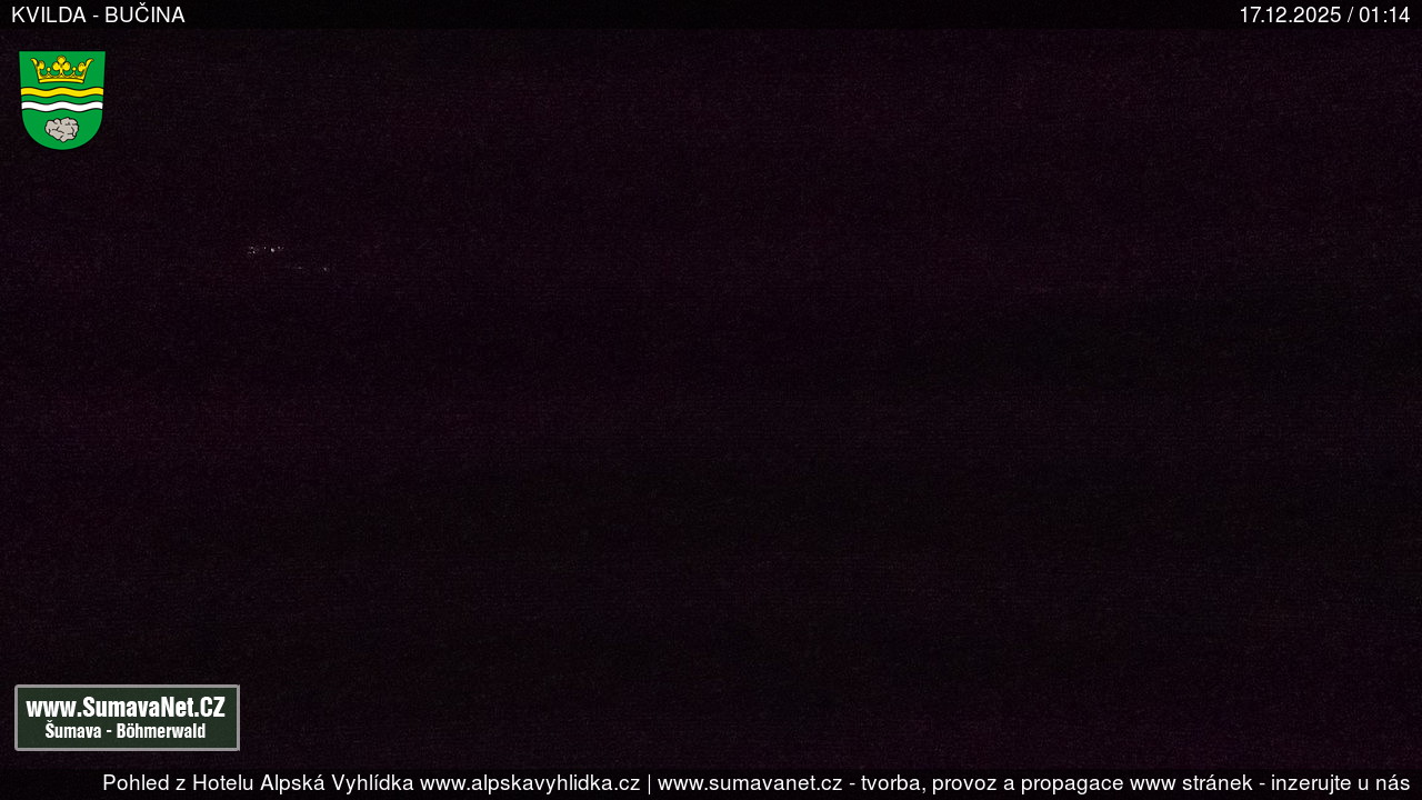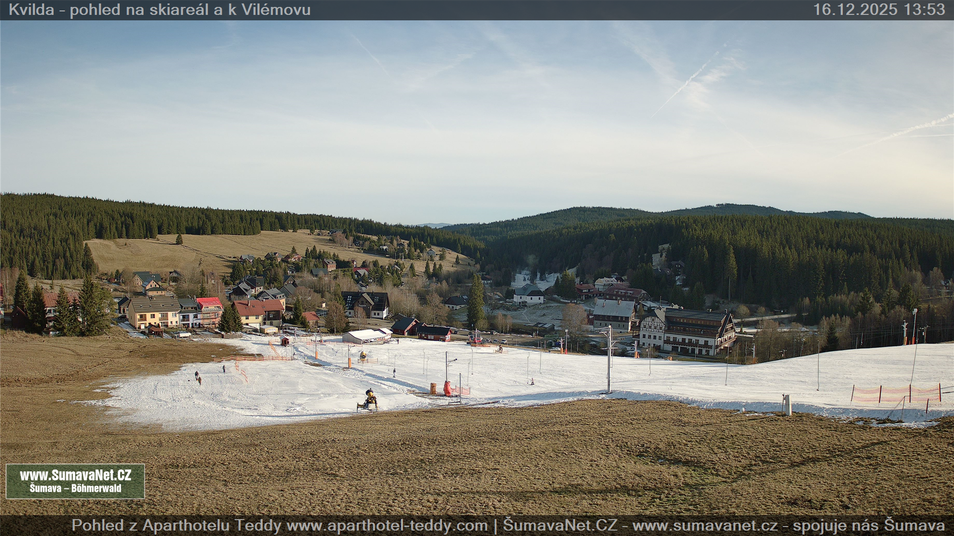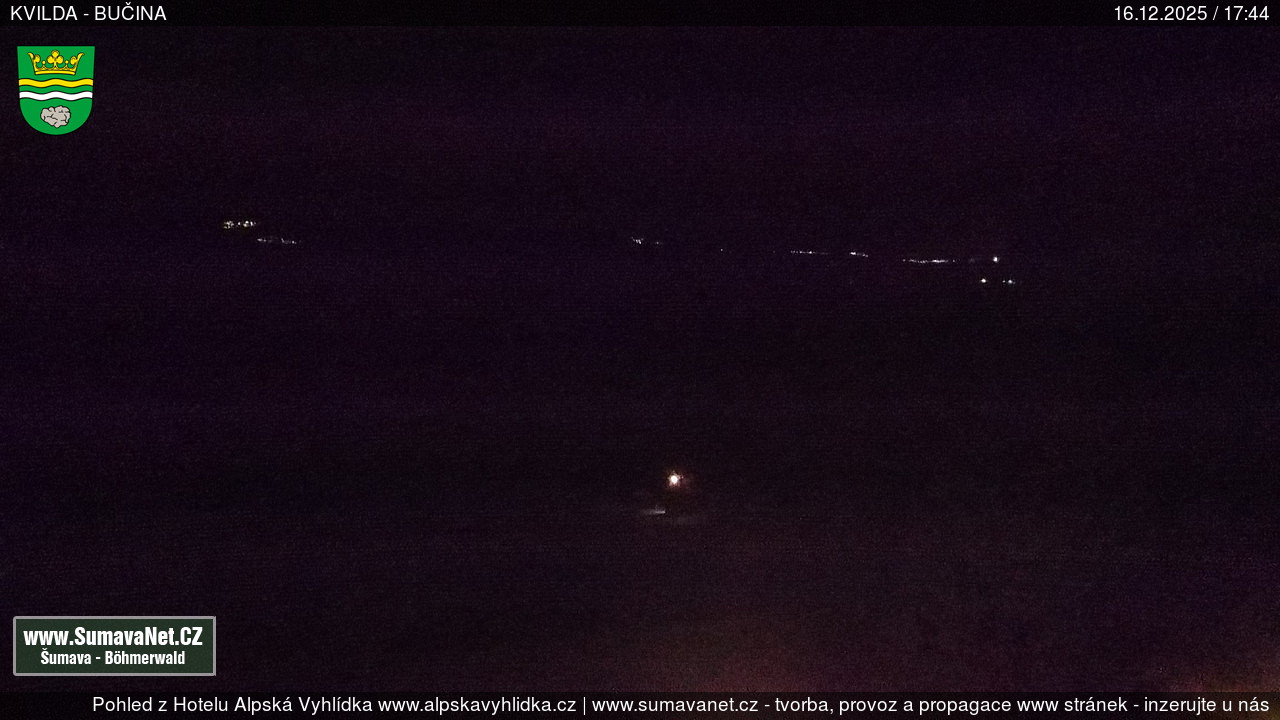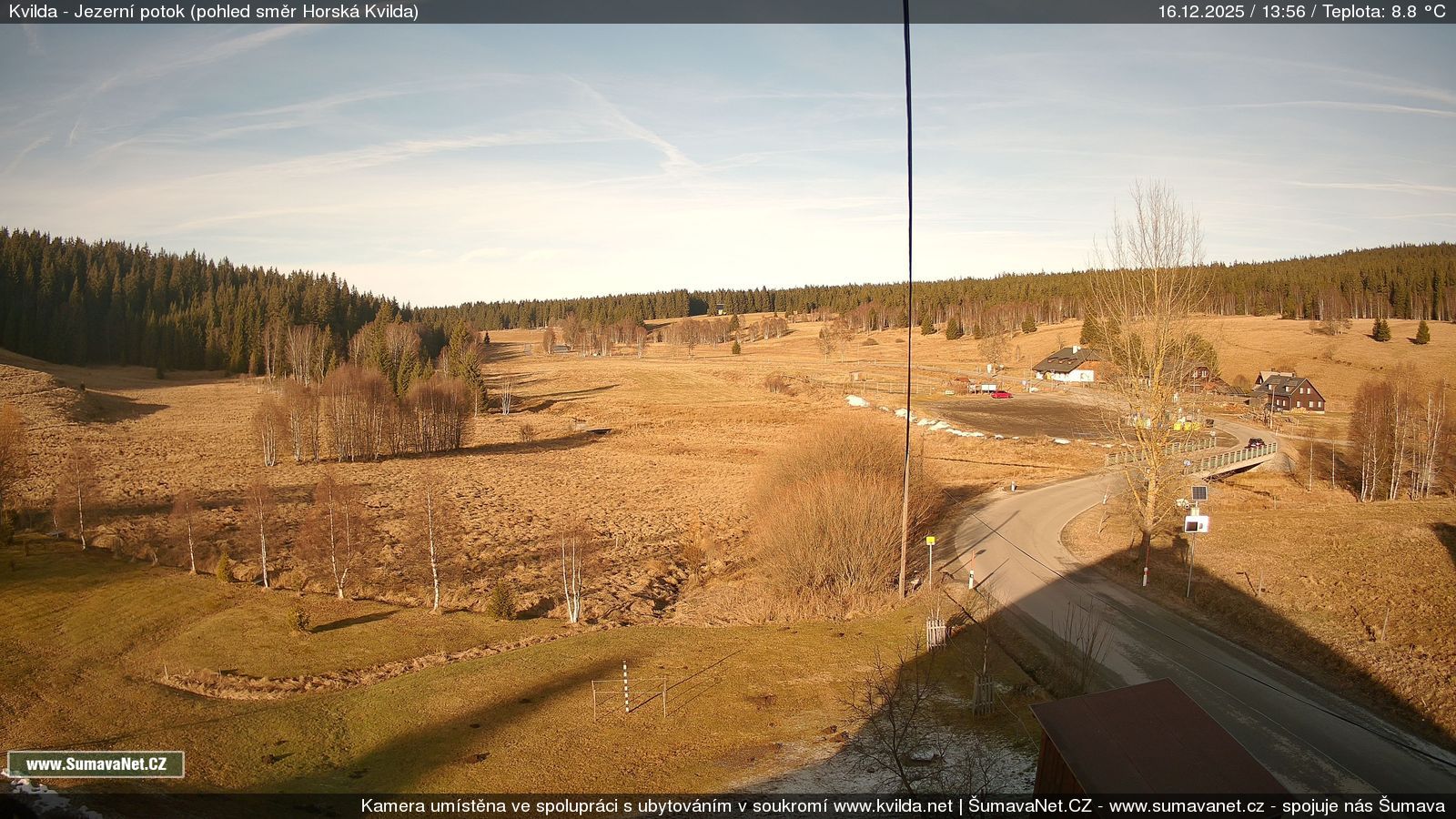 Page contentWebCamsKvildaBig Image16.12.2025 1:21:29Select time: Archive: Today 1 day 2 days Week Month 100 days Year Provozováno Informačním serverem ŠumavaNet.CZ ŠumavaNet.CZ & Aparthotelem TeddyKvilda - Jezerní potokBig Image16.12.2025 1:19:20Select time: Archive: Today 1 day 2 days Week Month 100 days Year Kvilda - centrum16.12.2025 1:20:39BučinaBig Image16.12.2025 1:16:07Select time: Archive: Today 1 day 2 days Week Month 100 days Year Další webkamery Tyto dvě kamery Vám přinášíme ve spolupráci se sumava.eu Refresh page