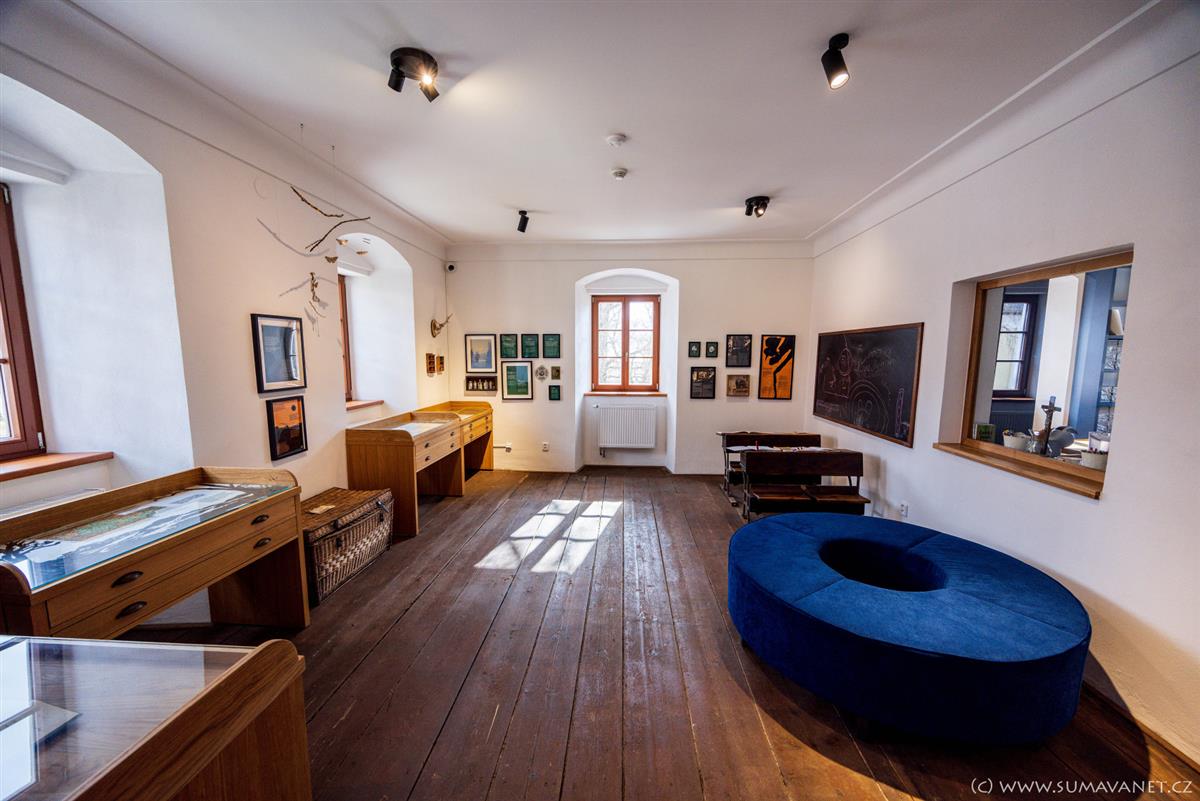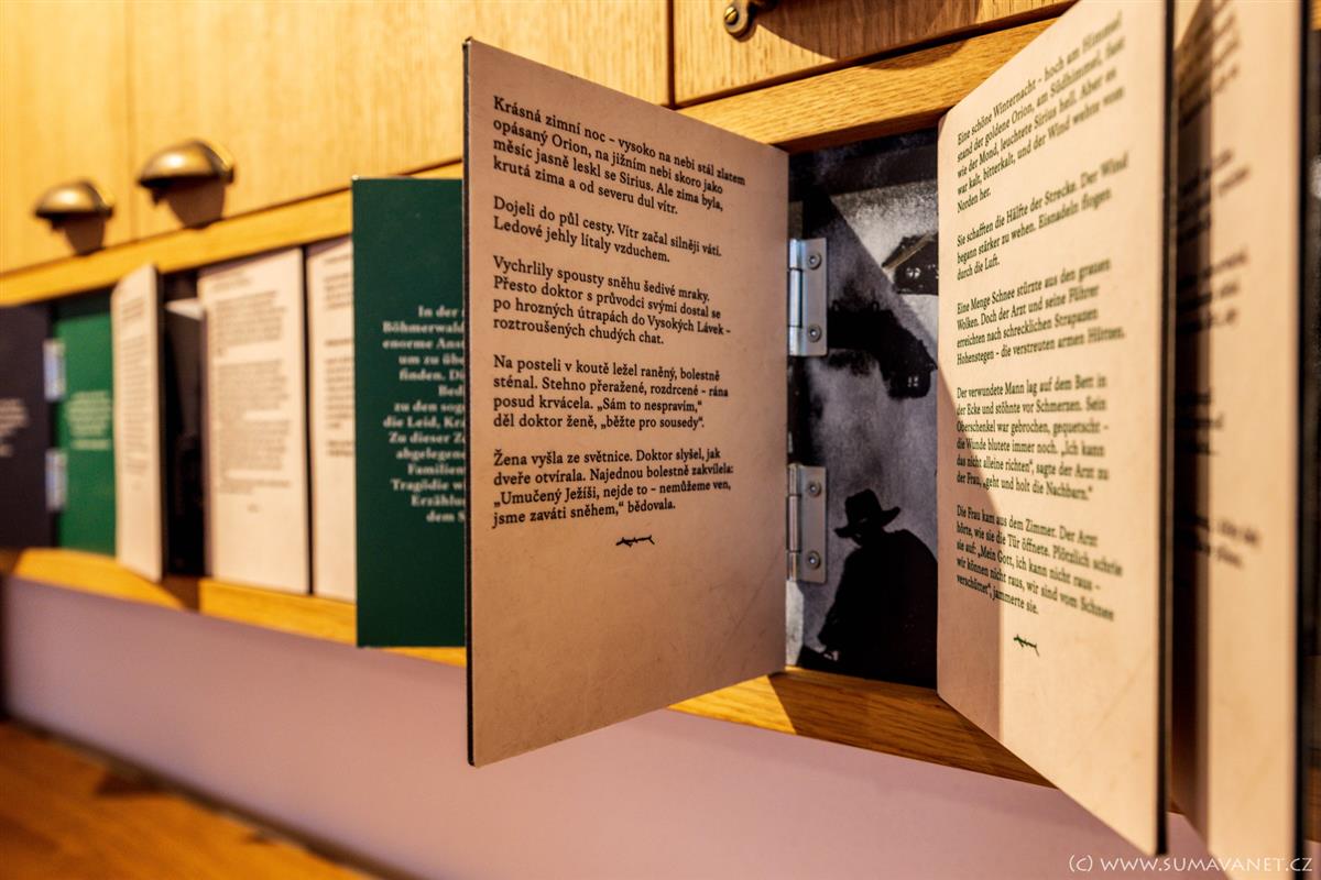 Expozice přibližuje šumavský les jako živou a mocnou bytost – tajemnou, starší než člověk, ale zároveň křehkou a ohroženou. Tento jedinečný svět ožívá i prostřednictvím jeho známých románů Ze světa lesních samot, V ráji šumavském a Kam spějí děti.