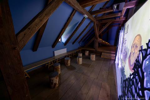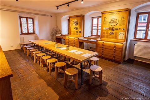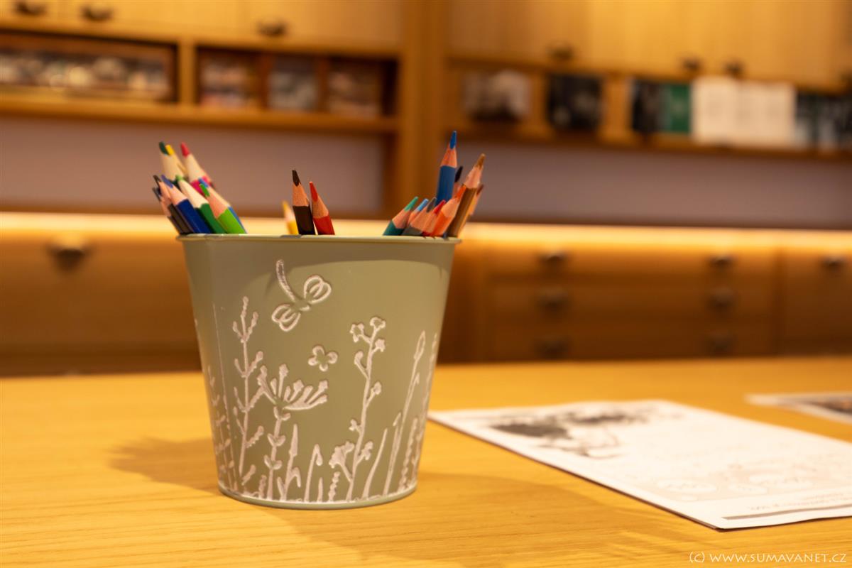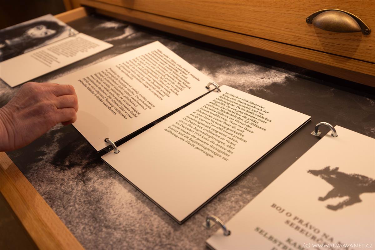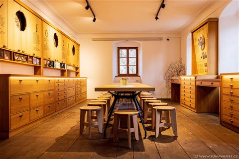 Součástí domu je také „badatelna“ inspirovaná starými knihovnami a školními kabinety, kde návštěvníci objevují historii Šumavy, proměny lesa i souvislosti jejího vývoje. Ve „spisovatelně“ pak poznáte Klostermannův život, jeho literární tvorbu i dobu, ve které žil.
