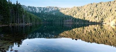 Černé jezero je rozlohou největší na Šumavě. Své jméno dostalo od zdánlivě černé barvy vody jezera, vznikající odrazem okolních hustých lesů.