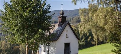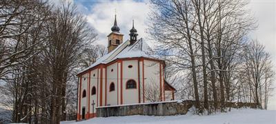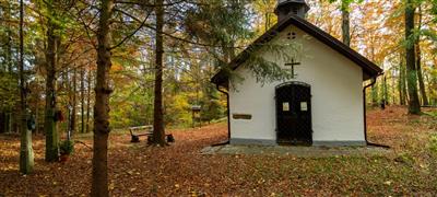 Znovuobnovená kaple v Knížecím Dvoře (Fürstenhof). Krásné místo z výhledem do hamerského údolí a horu Ostrý.