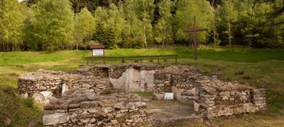 Obnovené základy kaple z let 1730–1731. Malebný výhled do hamerského údolí.